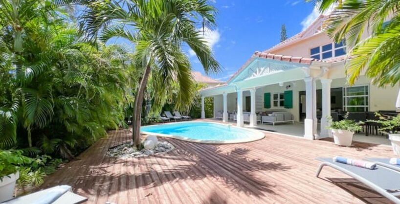 Enchanting three bedroom, three bath home with spacious one bedroom, one bath cabana, in-laws quarters. Charming living area features fireplace and fabulous art deco details. Formal dining room. Remodeled kitchen with granite countertops, white cabinetry and stainless appliances. Lovely master bedroom has updated bath, beautiful view of the pool. Guest bedrooms have walk-in, cedar closets. Delightful backyard; majestic oaks surround the free form pool and expansive patio, wet bar and grill.
